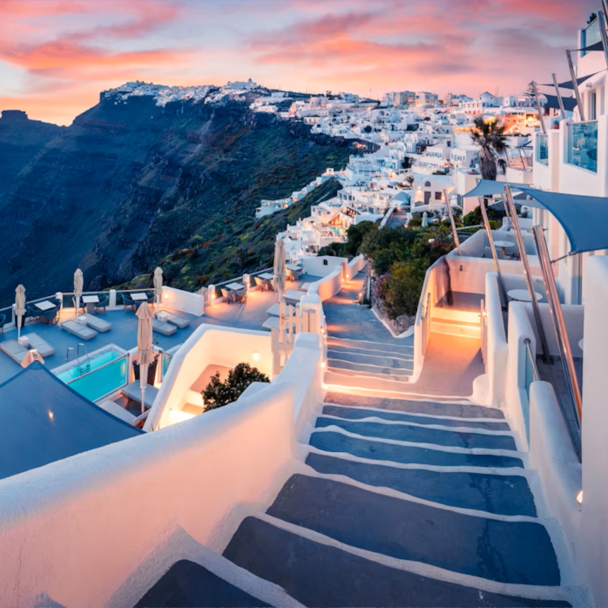Explore Santorini's seaside treasures and enjoy deep blue waters and beaches with white, red, or black sand or volcanic pebbles, spectacular rock formations, and impressive lunar landscapes. Santorini, the youngest volcanic land in the Eastern Mediterranean, is waiting for you! Don't hesitate! Experience the once-in-a-lifetime romance and charm of this unique destination.