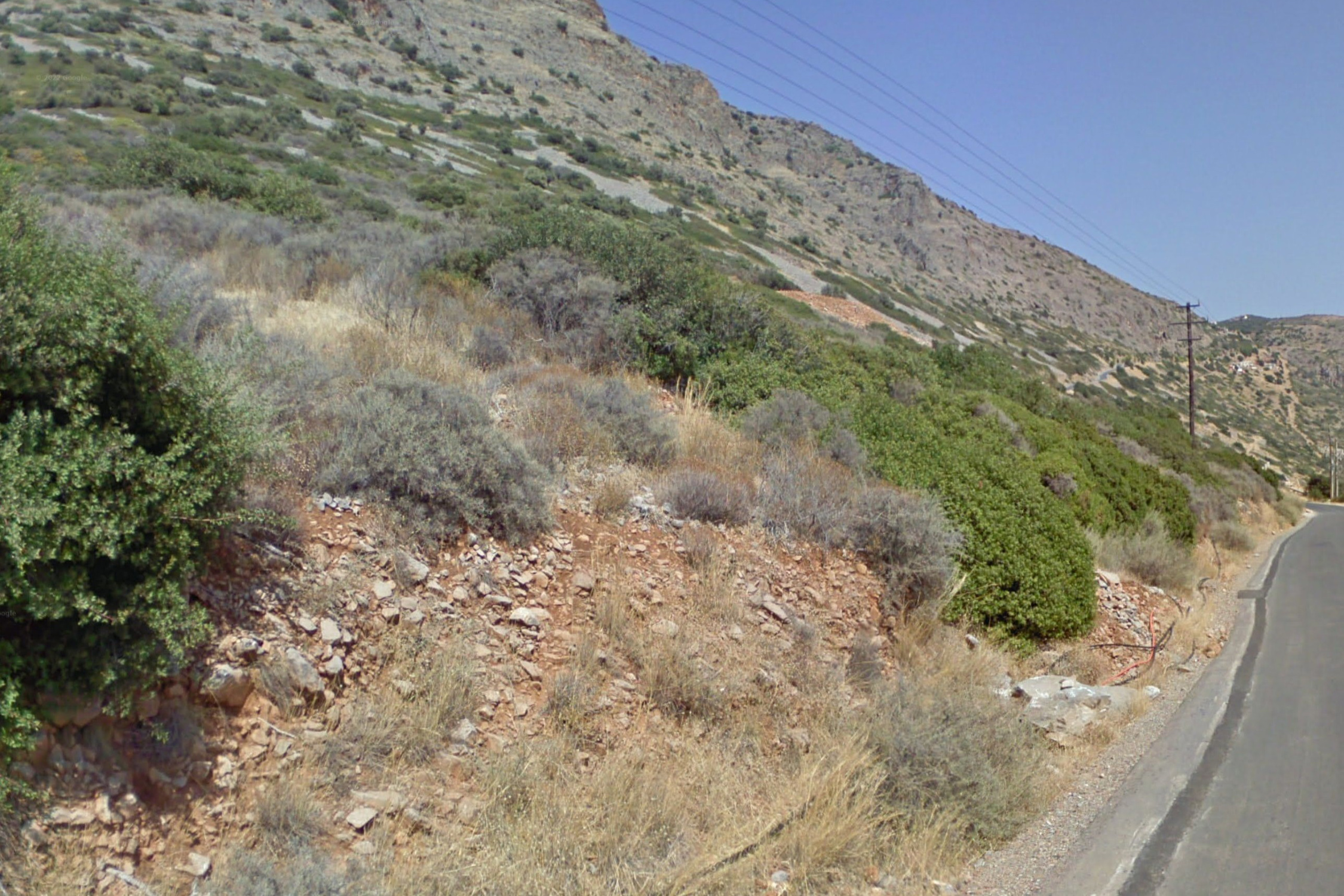Hillside plot of land, with panoramic sea view towards Spinalonga island in Crete.